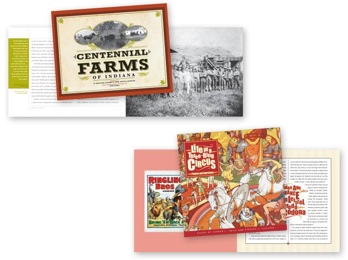 In addition to redeveloping the Indiana Historical Society brand, we’ve designed brochures, publications, and many books, from richly illustrated coffee table books to scholarly tomes, biographies to children’s books.
